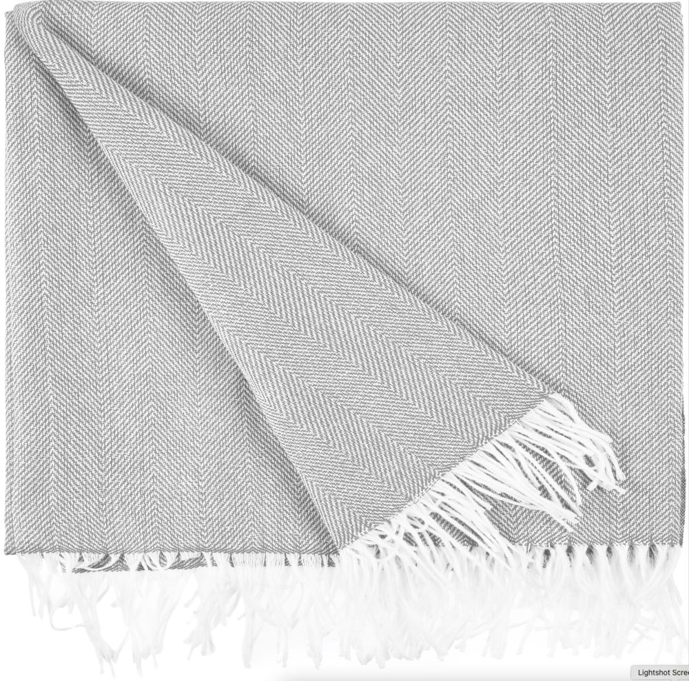 Классический рисунок «елочка» не слишком привлекает внимание, но в то же время добавляет изюминки. Смешанный состав пряжи продлевает срок службы и существенно облегчает уход за пледом.