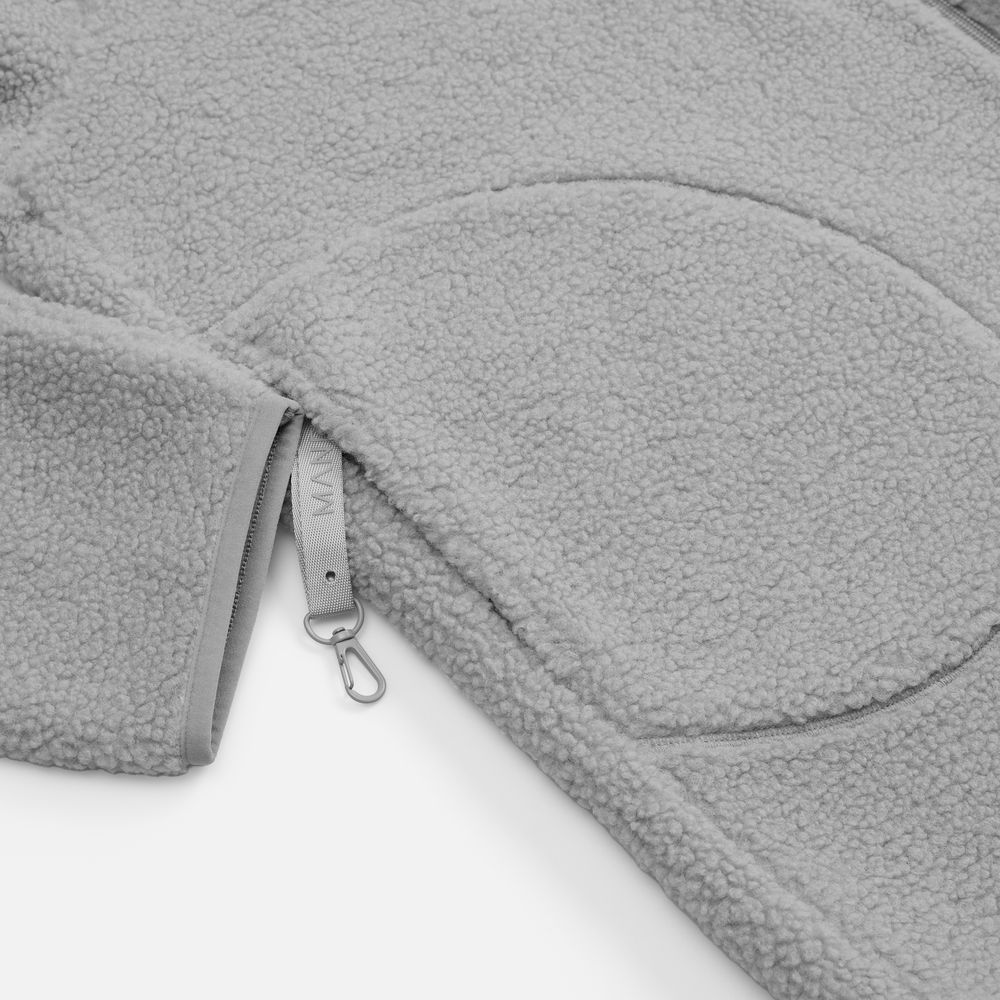 Куртка дополнена двумя боковыми карманами: в правом предусмотрен карабин для ключей или пропуска — практичная деталь для повседневной жизни. Молния с двойным бегунком позволяет регулировать посадку и добавляет функциональности.