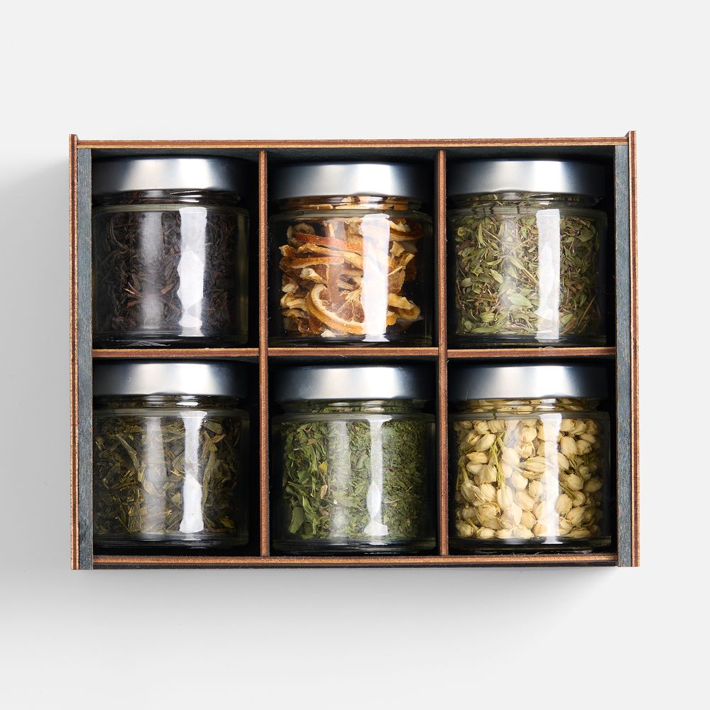 Бутоны жасмина наполняют напиток тонким цветочным ароматом, сушеная мелисса вносит легкую свежесть, чабрец придает пряную нотку, а дольки апельсина — яркую фруктовую кислинку. Смешивая эти ингредиенты на свой вкус, можно стать настоящим чайным мастером, — и каждый раз будет получаться уникальное сочетание, которое отразит текущие предпочтения и настроение. Деревянная коробка‑пенал придает подарку благородный и экологичный вид. Libertea — это возможность превратить обычное чаепитие в особый ритуал.