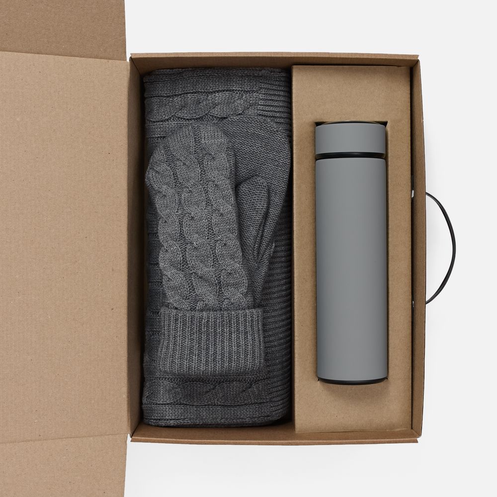 Материал: шарф, варежки - акрил 100%; термос - нержавеющая сталь, 304; покрытие софт-тач; коробка - микрогофрокартон