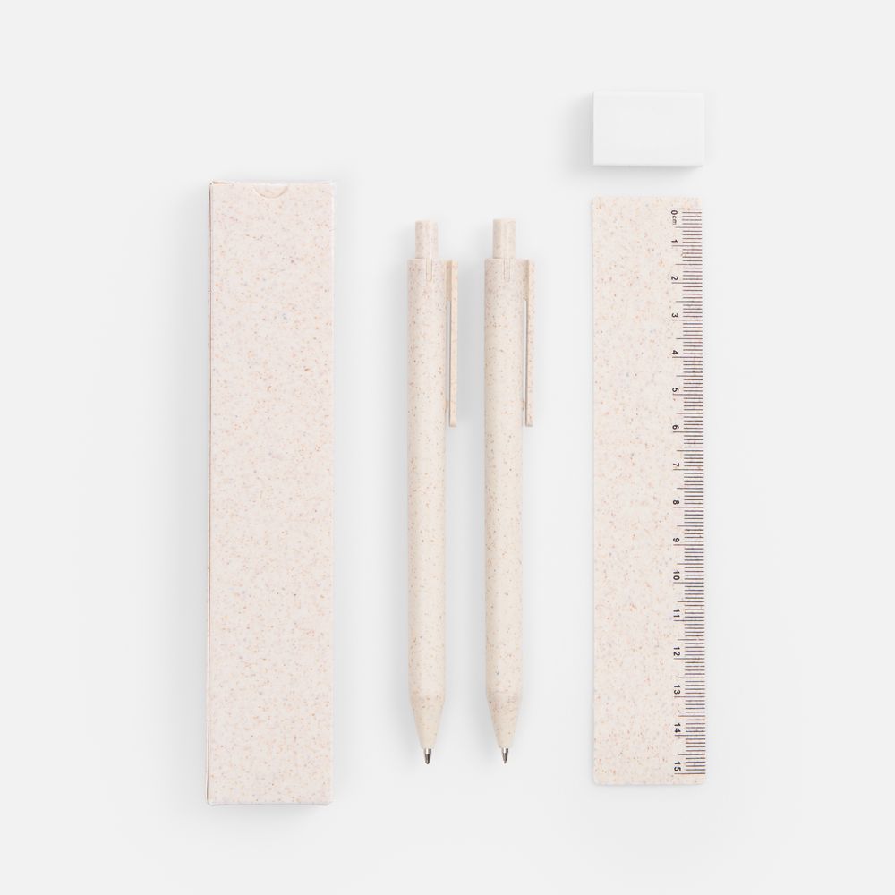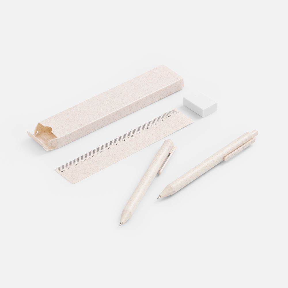 • В комплекте ручка, механический карандаш, линейка, ластик и упаковка.