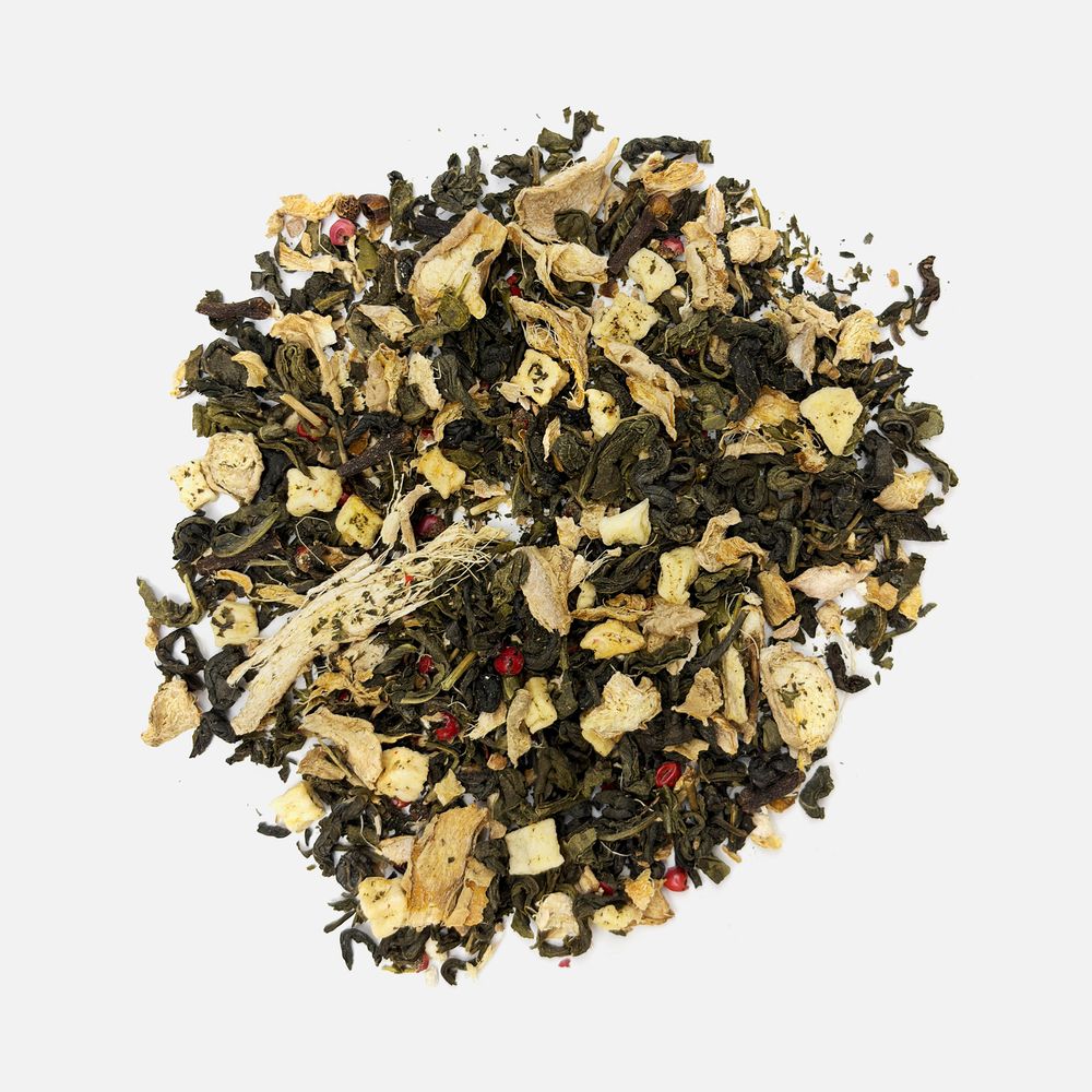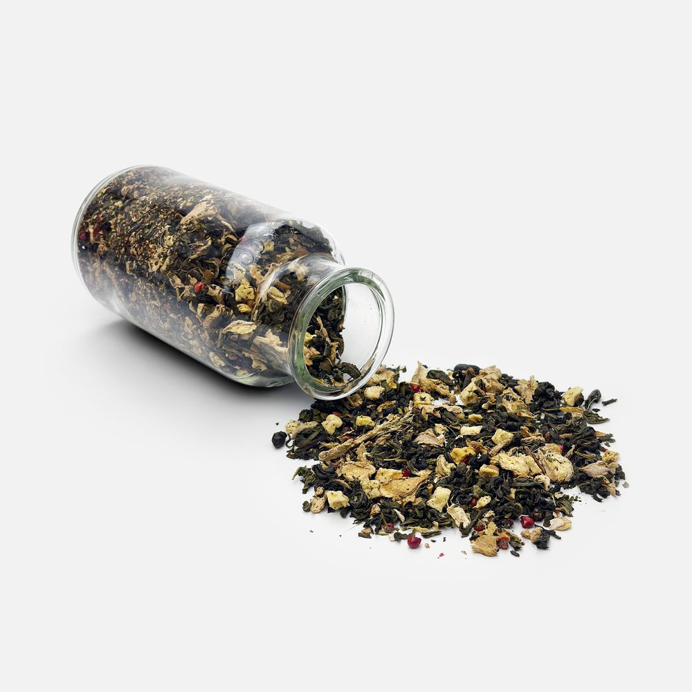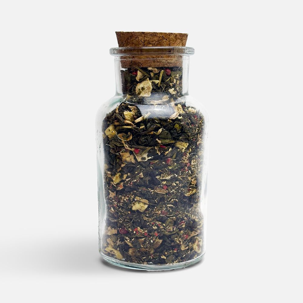 Зеленый крупнолистовой чай с кусочками имбиря, яблоком, гвоздикой и розовым перцем обладает многогранной палитрой вкуса и аромата. В состав чая входят только натуральные ингредиенты, а чайные листья предварительно вымачиваются в имбирном соке: вкус напитка становится особо насыщенным и обогащенным. «Сокочай» станет прекрасным подарком для любителей необычных вкусовых сочетаний и здорового образа жизни. Поставляется в стеклянной бутылке с пробкой.