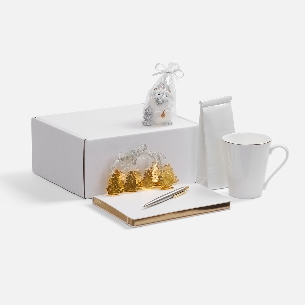 Поэтика праздника складывается из приятных и важных мелочей. В наборе «Планы на счастье» все подчинено одному замыслу — нести свет, радость и конечно же, пользу в преддверии самого волшебного времени года. В новогоднюю суету порой хочется замедлиться и ненадолго выдохнуть, чтобы подумать о главном и настроиться на будущие свершения. «Планы на счастье» — это тот настрой, с которым нужно входить в грядущий год, с уверенностью и теплом в душе. Для этого достаточно лишь расслабиться за чашечкой ароматного чая и записать все ценные мысли в стильный ежедневник. А за создание атмосферы и праздничное мерцание ответят милая гирлянда в виде елочек и свечка-невеличка. «Планы на счастье». Загадывая самое лучшее.