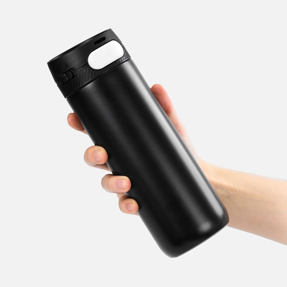Термостакан X1 с цветной кнопкой, черный с белым