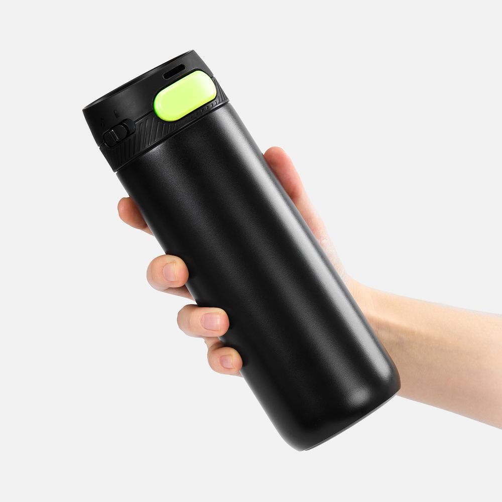 Термостакан X1 с цветной кнопкой, черный с желтым