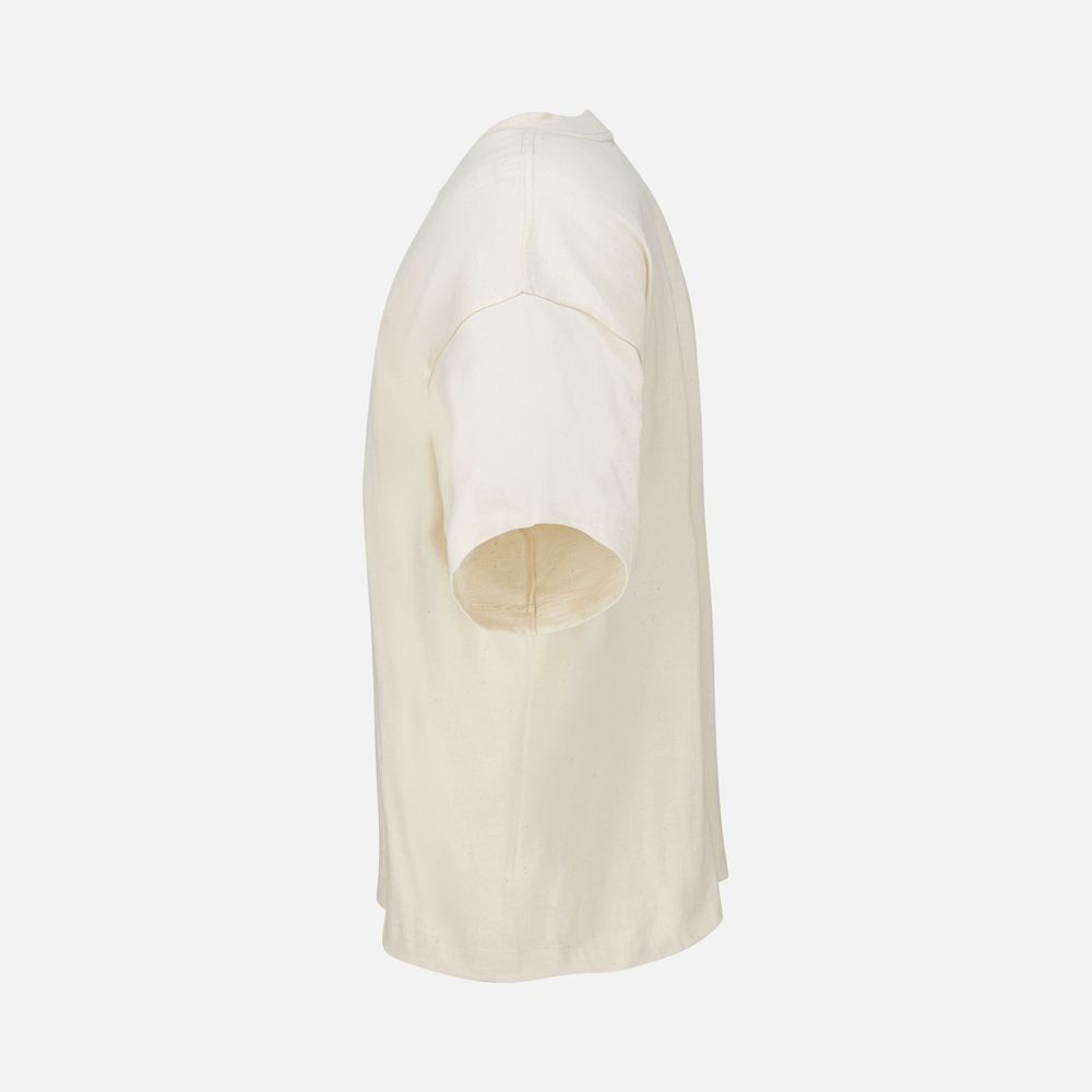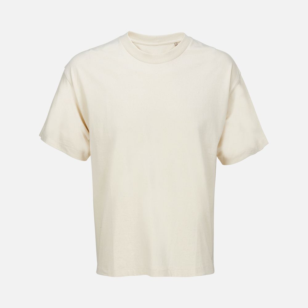 Футболка оверсайз унисекс с круглым вырезом и без боковых швов. Выполнена из смеси переработанного и обычного хлопка. Благодаря повышенной плотности отлично держит форму. Укрепляющая тесьма по вороту. Усиленные плечевые швы. Круглый вырез отделан резинкой.