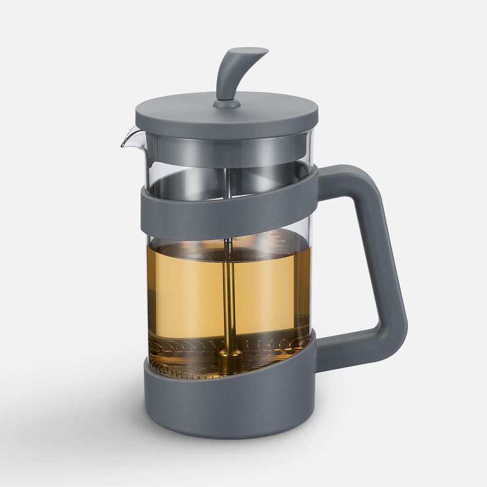 Колба из боросиликатного стекла способна выдерживать температуры до +110°С. Пластиковые детали изготовлены из прочного и нетоксичного материала, а пресс-фильтр — из нержавеющей стали. Носик с системой «антикапля» предотвращает проливание, позволяя аккуратно наливать горячий чай или кофе. Прозрачные стенки позволяют легко определить крепость заваренного напитка. Модель также оснащена ненагревающейся ручкой, что делает использование удобным и безопасным. Емкость 1000 мл. Поставляется в подарочной коробке.