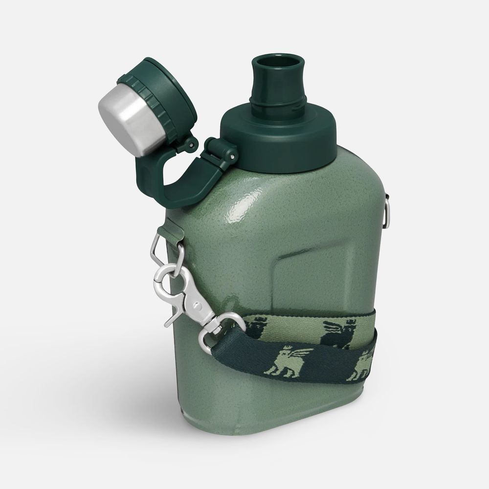 Конструктивные преимущества: герметичная крышка с двухступенчатым механизмом, который упрощает очистку, и съемный наплечный ремень с карабинами, который регулируется по длине и освобождает руки. Емкость 1000 мл.