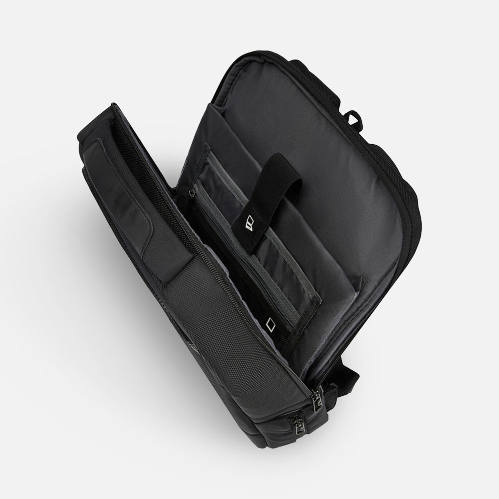 Коллекция сумок и рюкзаков Discovery изготовлена из влагостойкого полиэстера. Изделия отличаются эргономичной конструкцией, высокой надежностью материалов и лаконичным дизайном: оптимальное решение для делового подарка партнерам и клиентам. Рюкзак вмещает ноутбук диагональю до 15,6 дюймов, а также планшет, для которого предусмотрен отдельный карман на молнии. Довольно большой объем и продуманная система хранения позволяют переносить все важные документы и канцелярию, помимо основной техники.