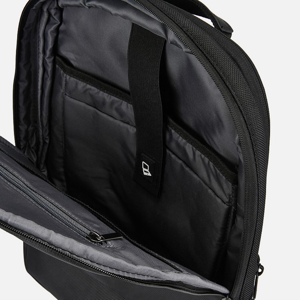 Коллекция сумок и рюкзаков Discovery изготовлена из влагостойкого полиэстера. Изделия отличаются эргономичной конструкцией, высокой надежностью материалов и лаконичным дизайном: оптимальное решение для делового подарка партнерам и клиентам. Рюкзак вмещает ноутбук до 15,6 дюймов, а также планшет, для которого предусмотрен отдельный карман. При желании объем рюкзака можно существенно увеличить с помощью молнии.