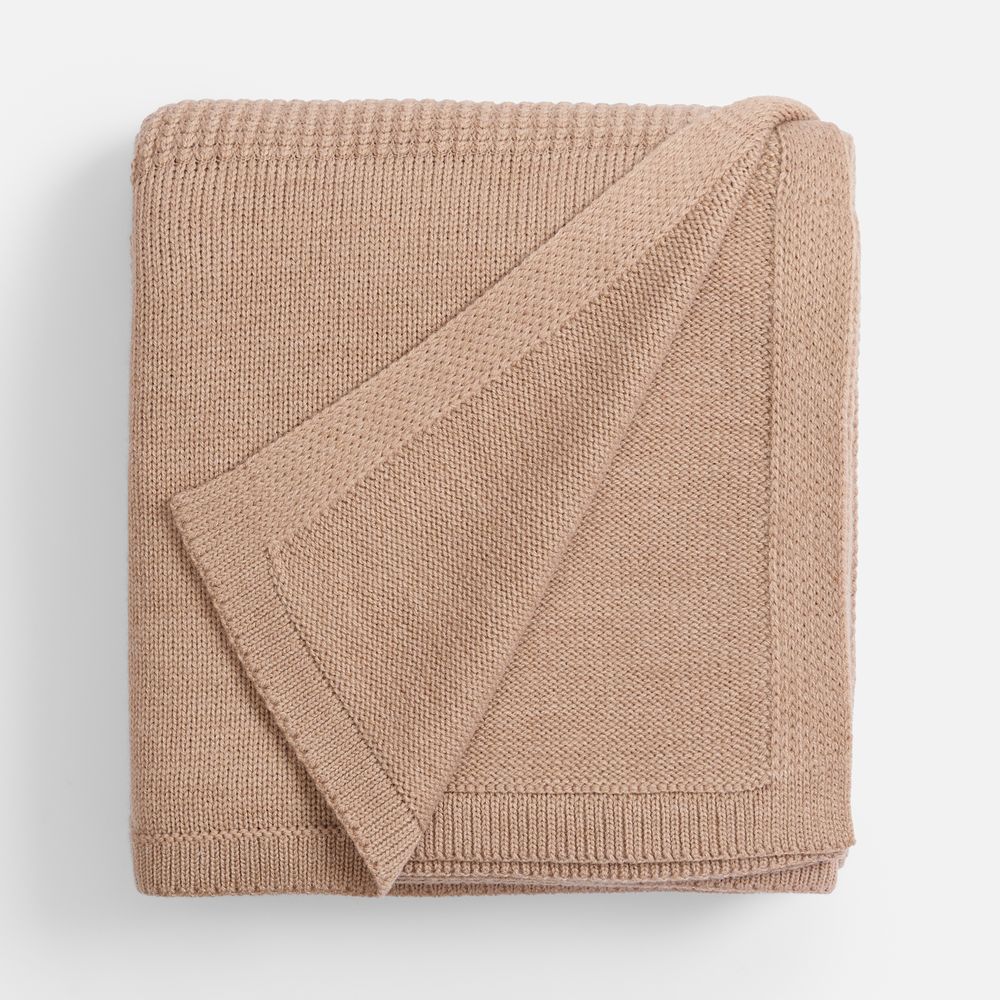 Плед Voyage соткан из мягкого сочетания шерсти и акрила — нежный, теплый и невесомый, он идеален для уютных вечеров. Кнопка позволяет превратить его в элегантную накидку, когда воздух становится прохладнее.