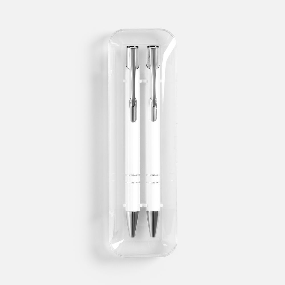 Набор из двух глянцевых ручек Keskus в прозрачном пластиковом футляре.