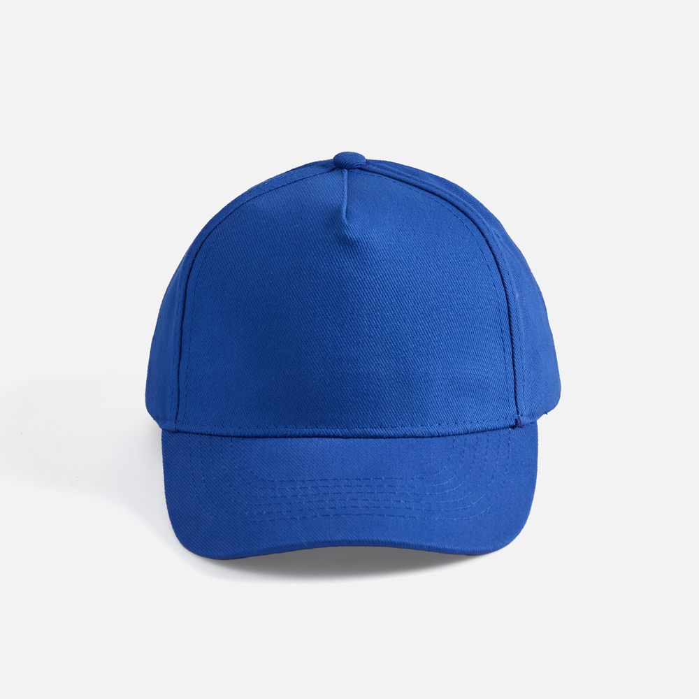Модель бейсболки с 5-ю клиньями без лобового шва из плотного чесаного хлопка.
