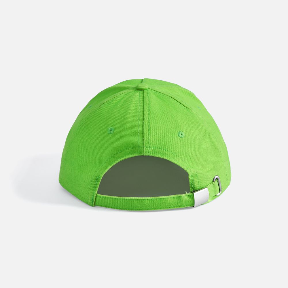 Модель бейсболки с 5-ю клиньями без лобового шва из плотного чесаного хлопка.